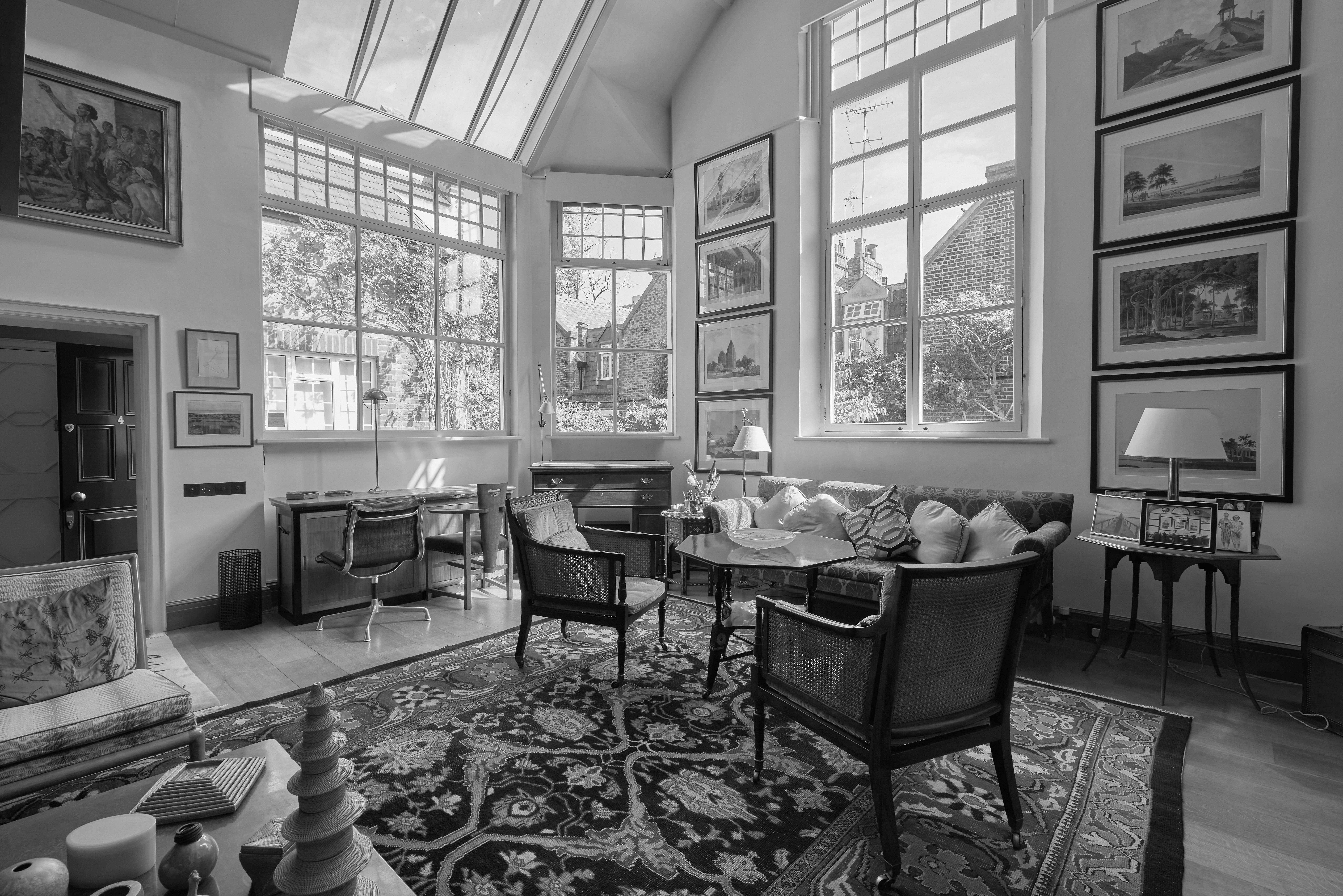 Combining intelligent design with timeless elegance, Pembroke Studios is a truly unique artists’ studio house that commands exceptional volume. Secluded within pretty communal gardens, it enjoys peaceful privacy and serene green vistas.