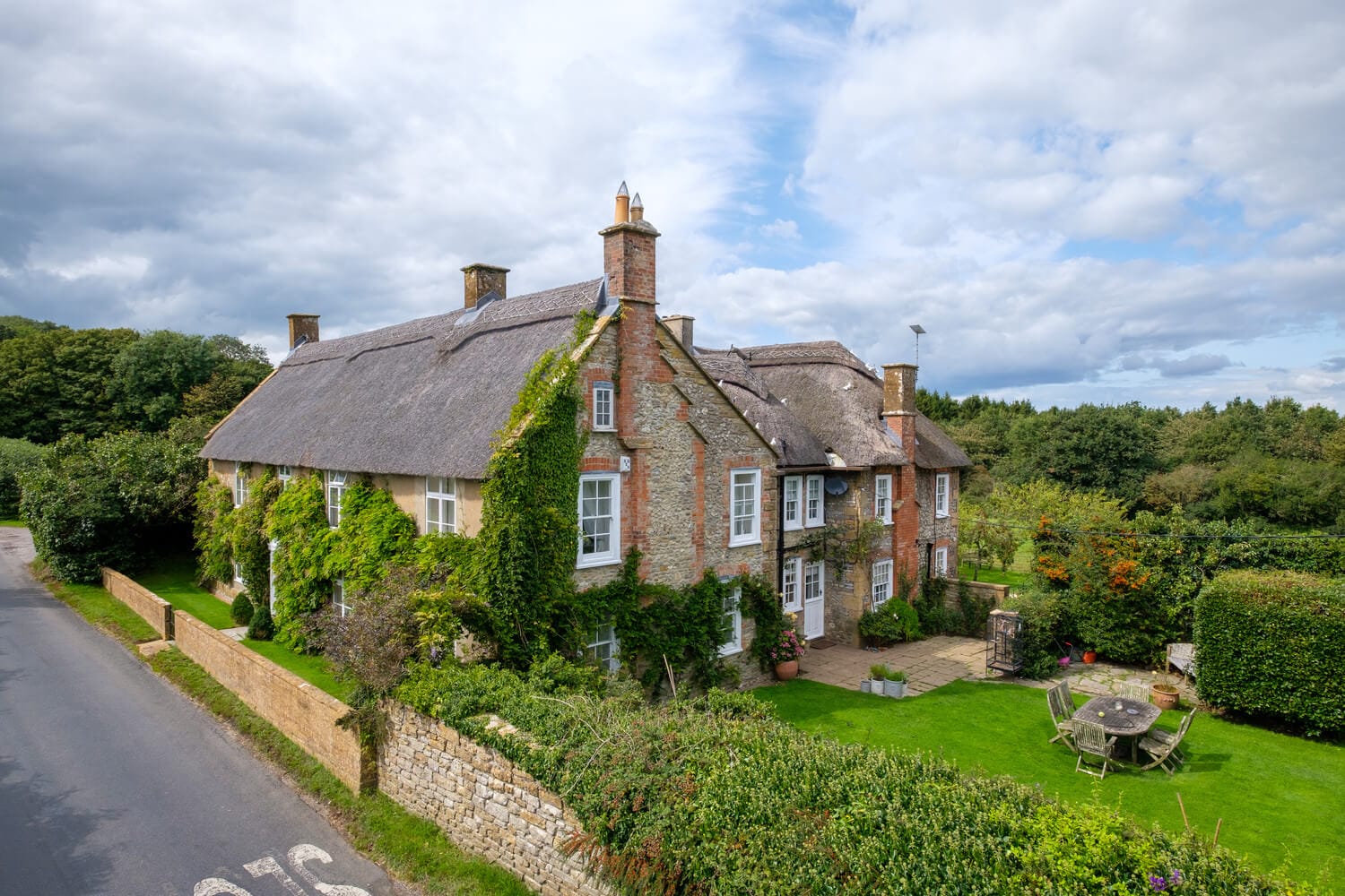 Benville House is a traditional Grade II listed 18th century stone house situated in a glorious rural location in the lovely hamlet of Benville. Set back from a quiet country lane behind a stone wall, the house’s pretty Georgian façade is made up of local honey-hued Ham stone with rusticated quoins, stone gable-copings, adornment of wisteria and a thatched roof which was recently renewed in 2019.
