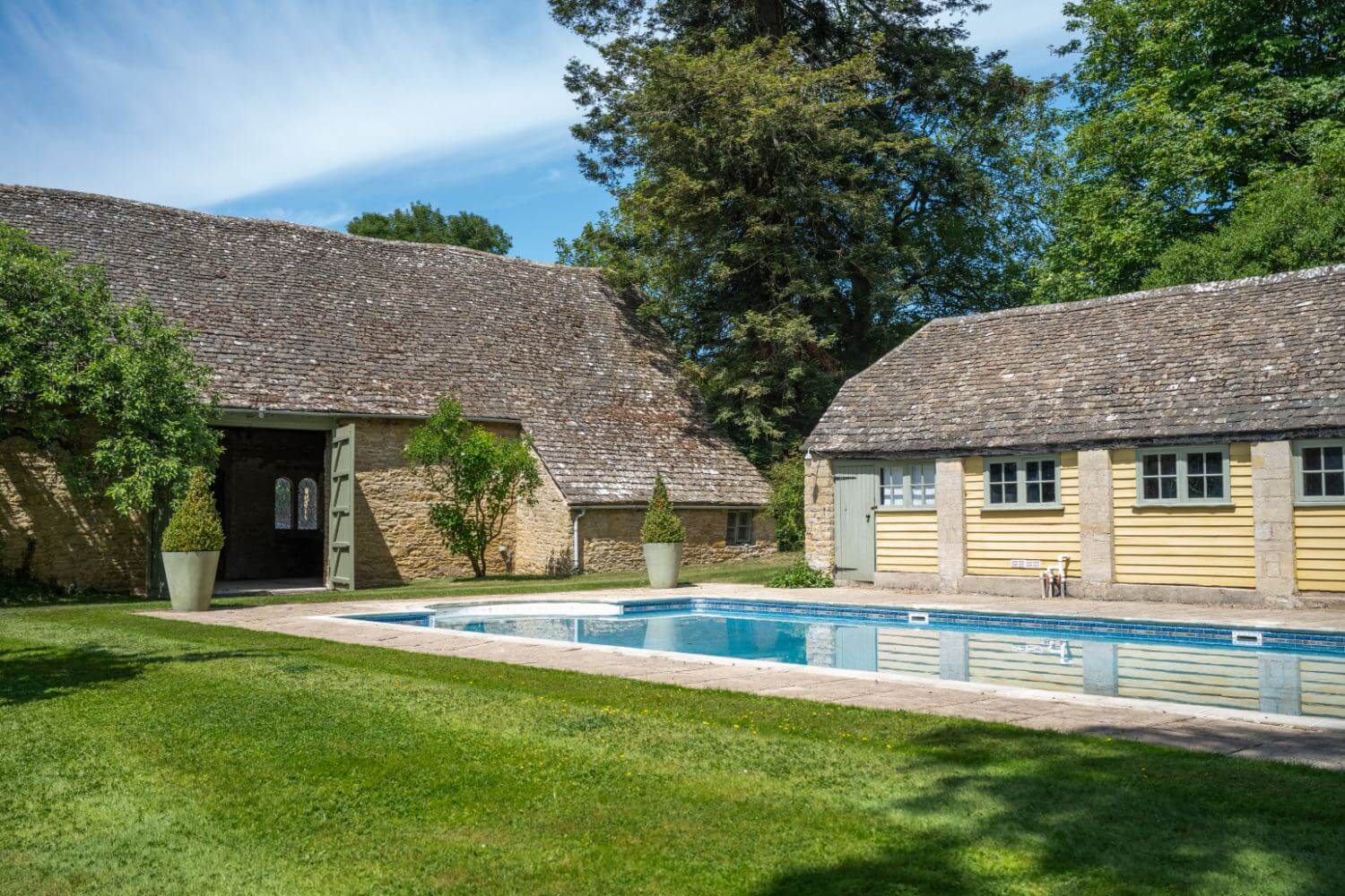 In addition to the house, there is also a large traditional barn which could be used for a variety of things. Currently it makes for useful storage and party barn. There is also a range of further outbuildings such as log stores and boiler rooms. There's also a heated outdoor swimming pool which is enclosed and private with attractive pool house.