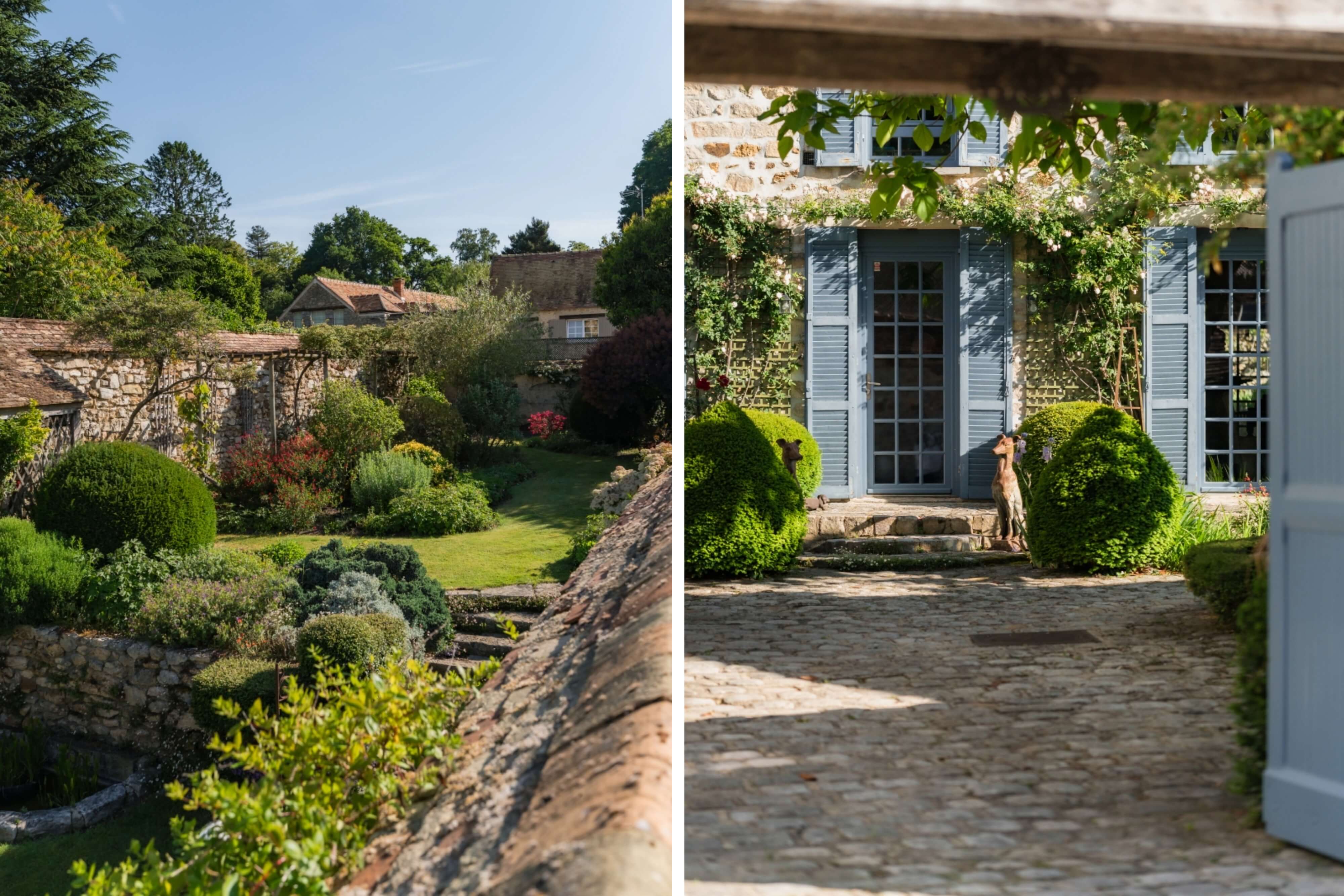 The residence is only 11 kilometres from Fontainebleau, 1 hour from Paris and is located in the northern reaches of the former Gâtinais county. The stone edifice is punctuated by windows and shutters painted in a gentle shade of blue. Behind the entrance gate, the sandstone cobbles that make up the forecourt extend around a catalpa tree and up to the main house as well as the outbuildings, which all together boast a total surface of almost 325 m² spread over two storeys. The walled plot includes a unique landscaped garden in which hundreds of different plants rub shoulders.