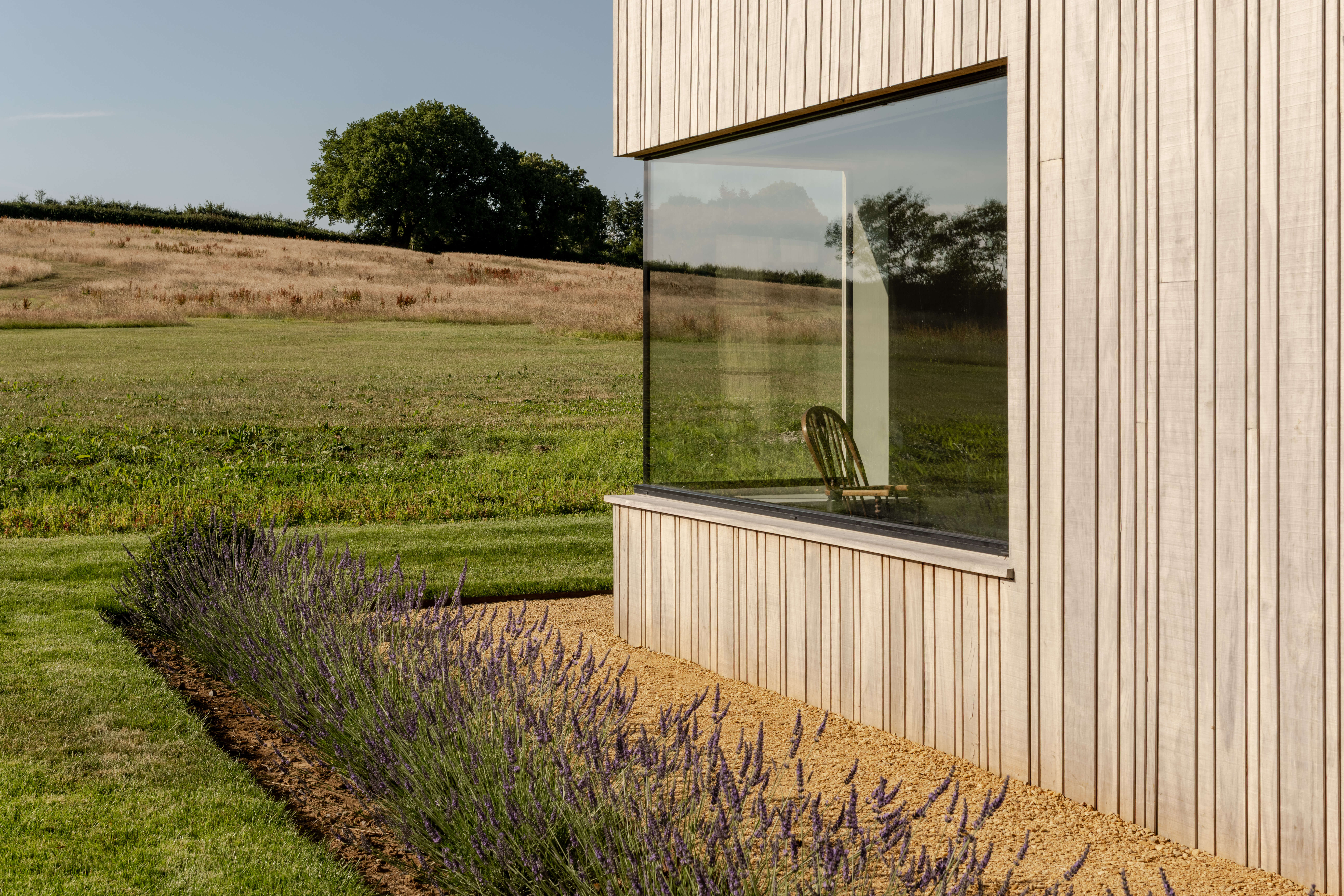 The design intends to reflect a balance of tradition and modernity. Stone gables and natural materials reference the Dorset vernacular, while timber cladding and large windows open the home to the views and light. Every aspect of the house, from its placement to its materials, has been chosen to feel connected to the surrounding land.
