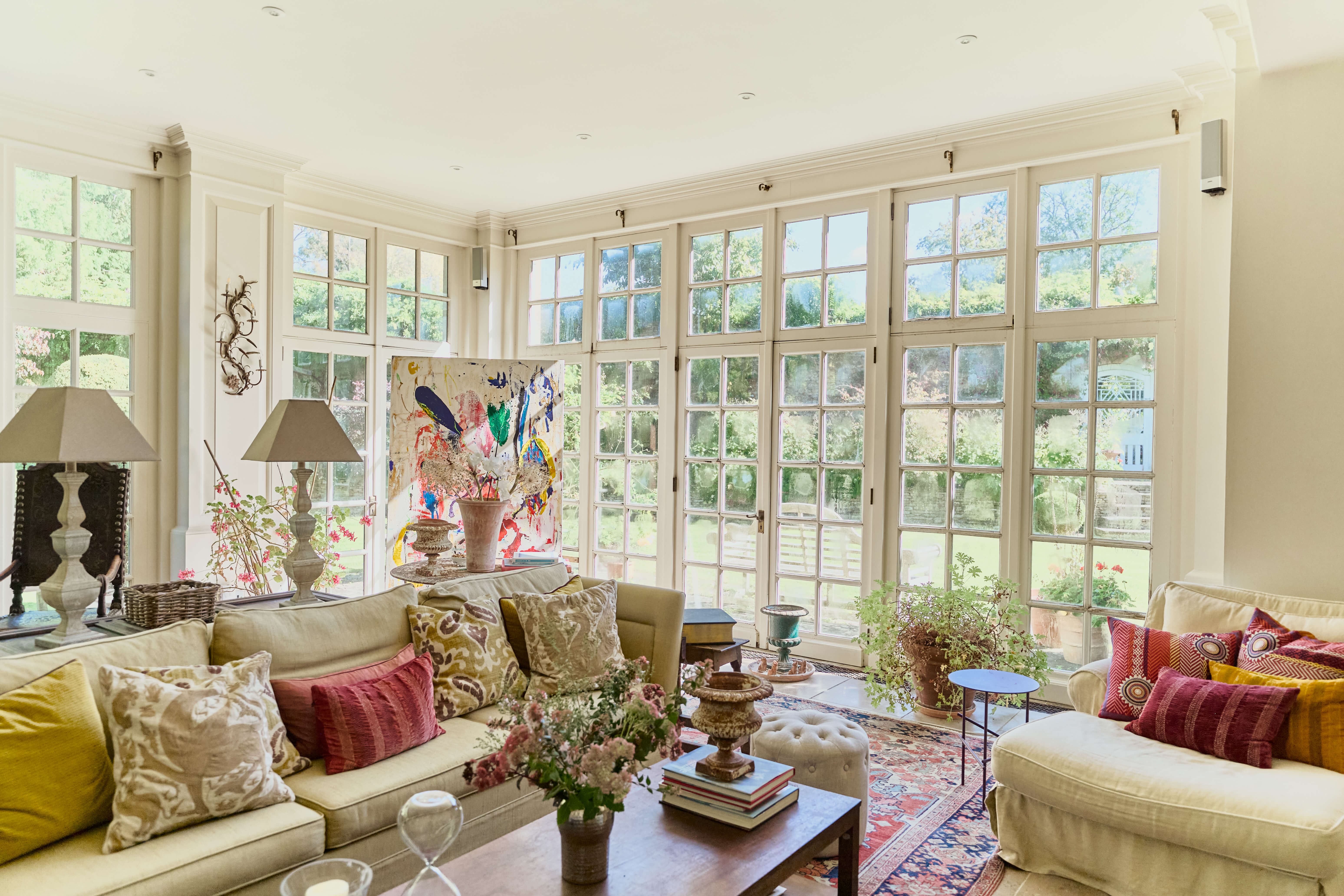 All have working fireplaces and stone mullion windows with high ceilings and yet none are out of scale or proportion. The highlight of the ground floor space, which can be reached both from the superbly fitted family kitchen and dining room (through a secret door) is the magnificent Orangery which has two walls of glazing with French windows on the garden. This magnificent space lends itself to summer and winter always offering a sense of being part of the secluded and private garden.