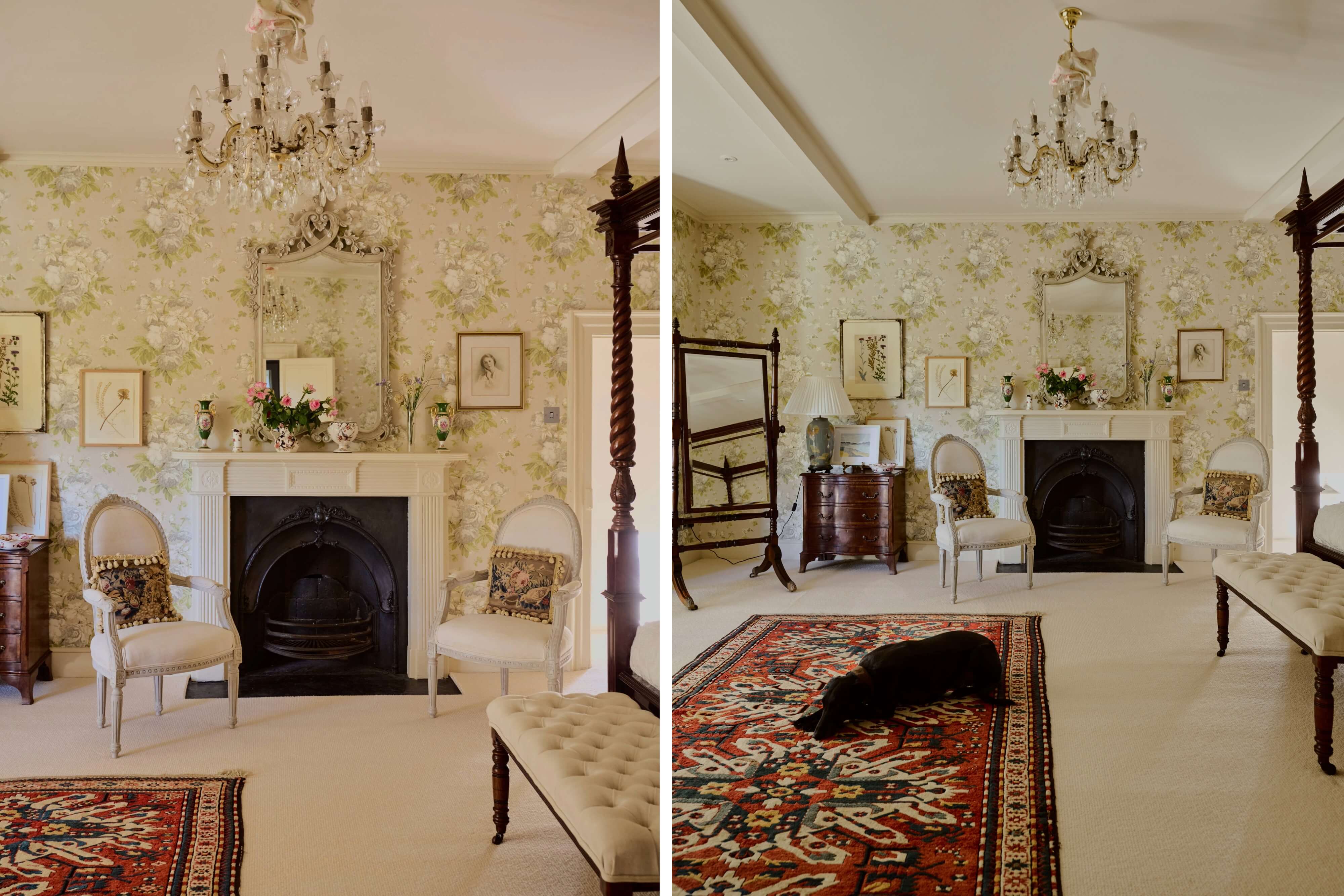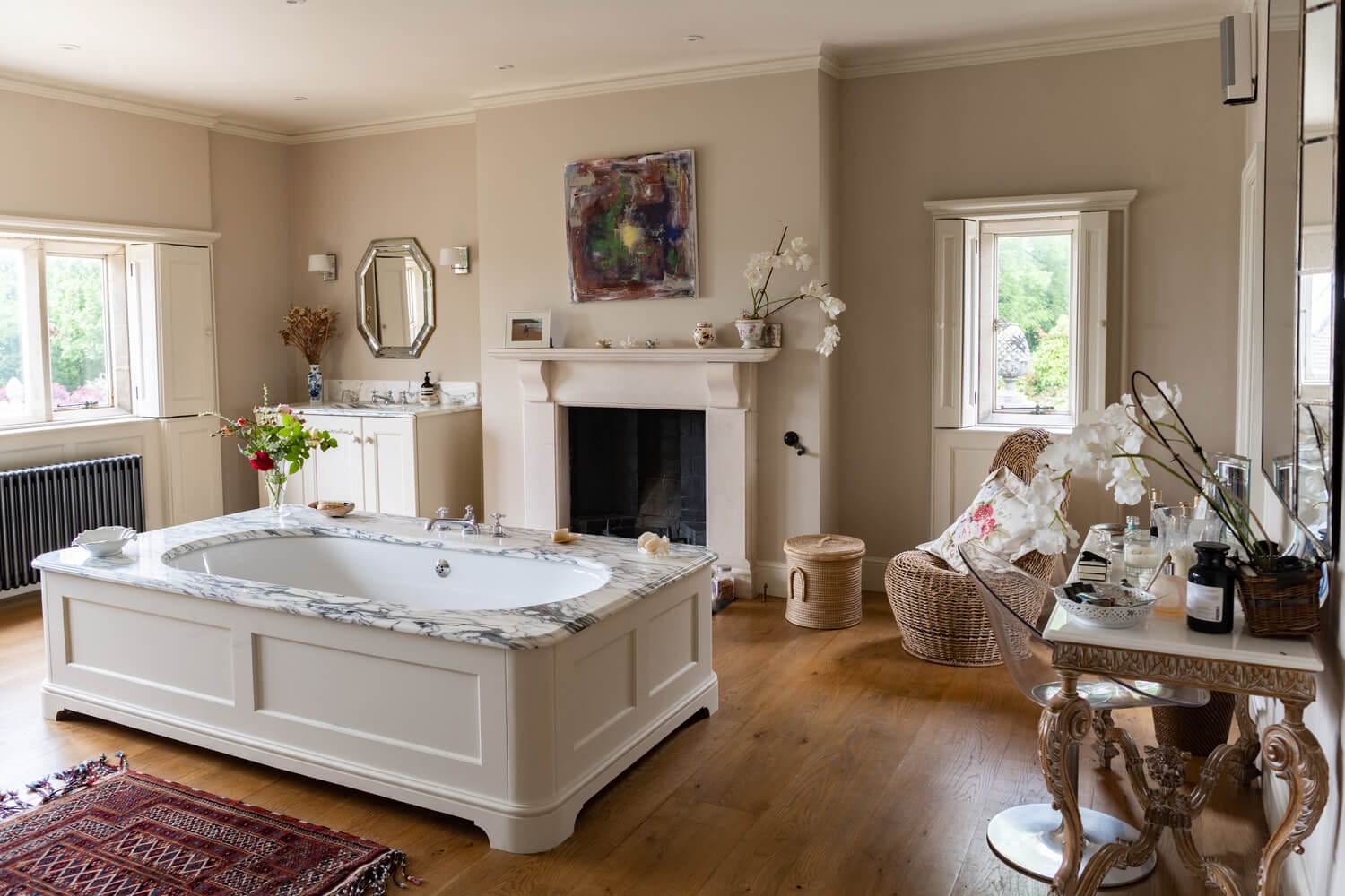 The principal suite, on the first floor, can be approached by any one of three staircases and features a wonderful bedroom overlooking the garden along with a splendid and indulgent bathroom.