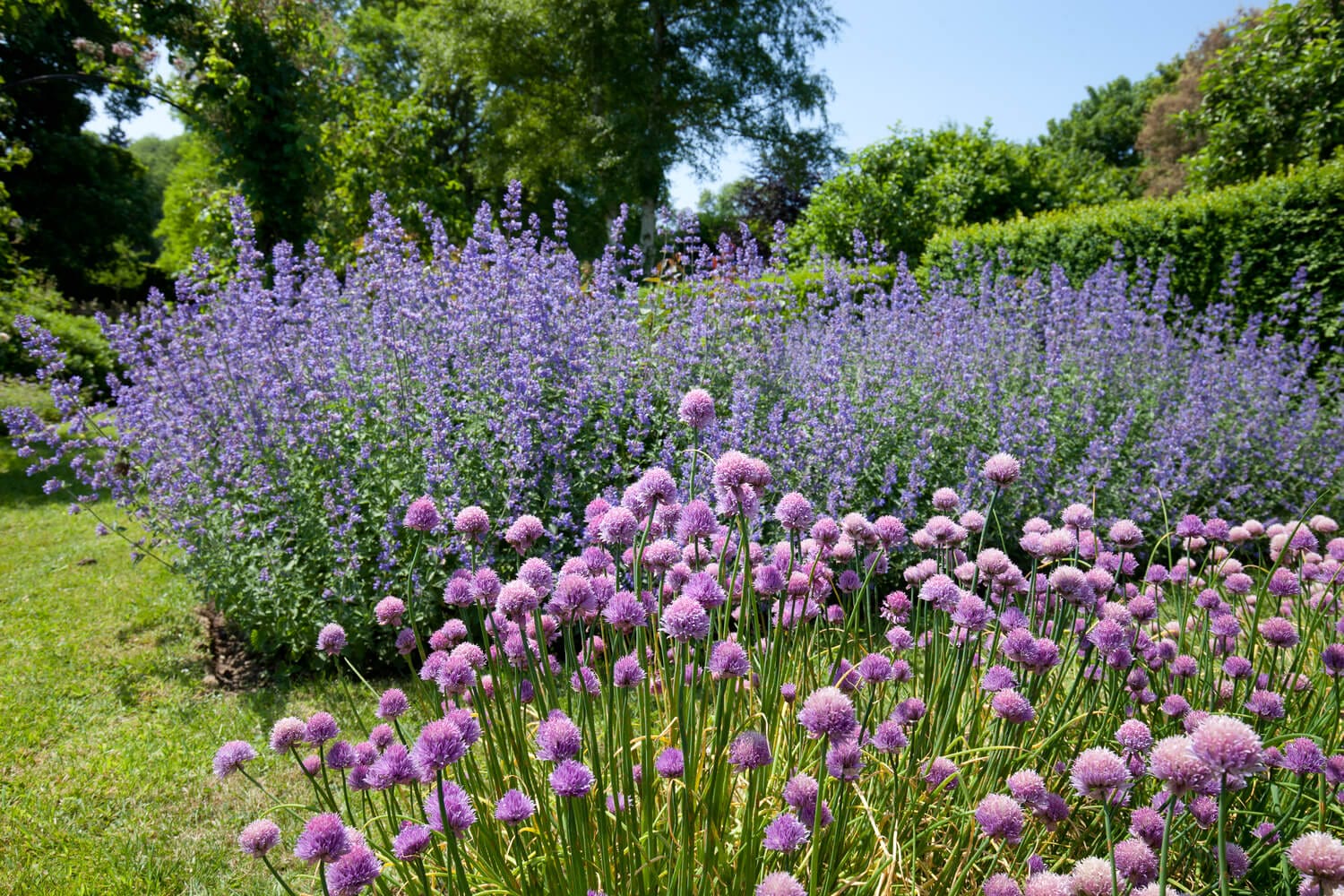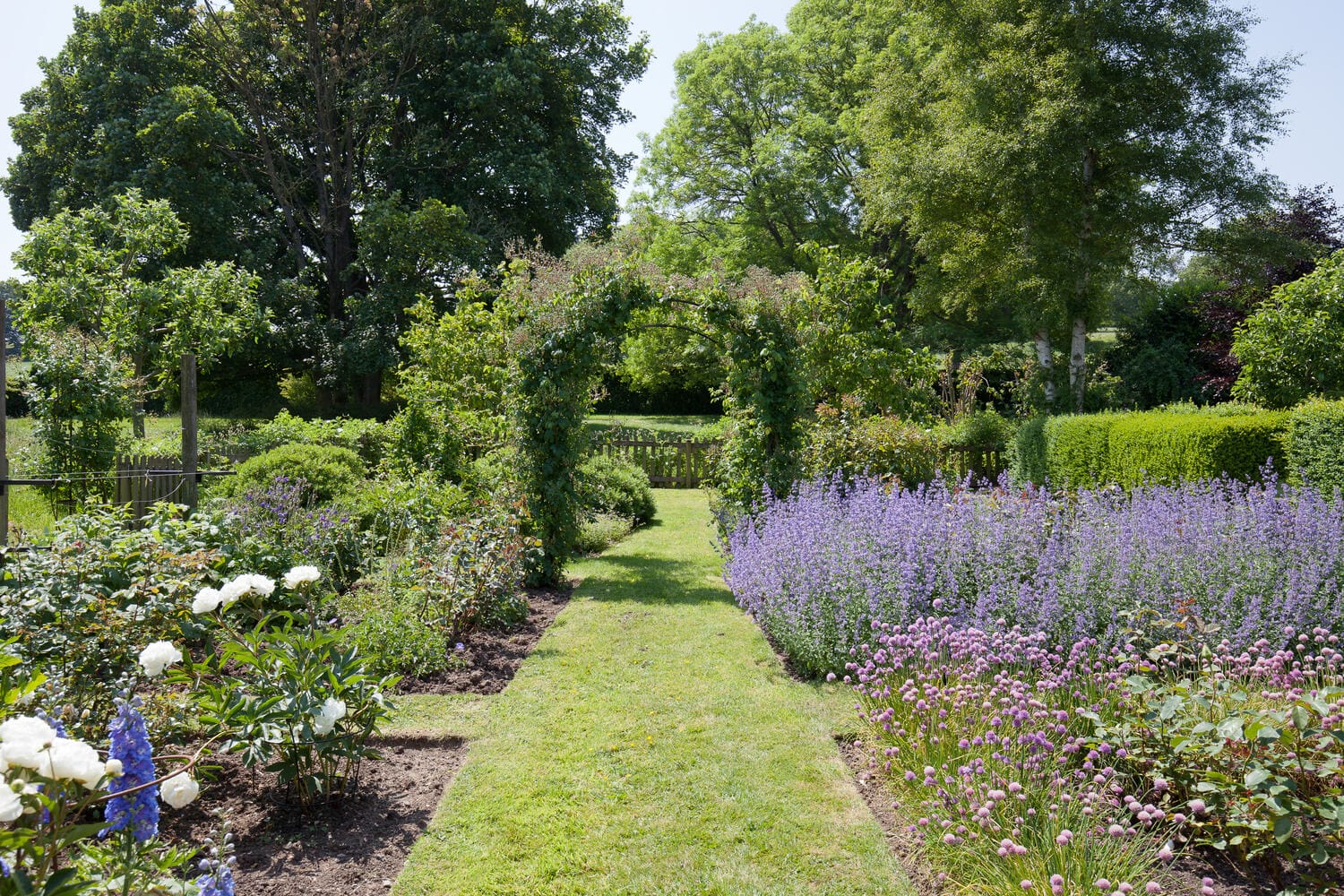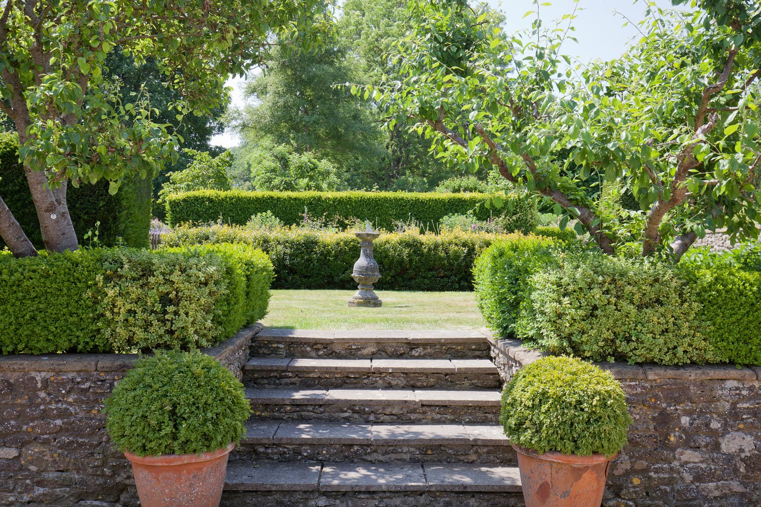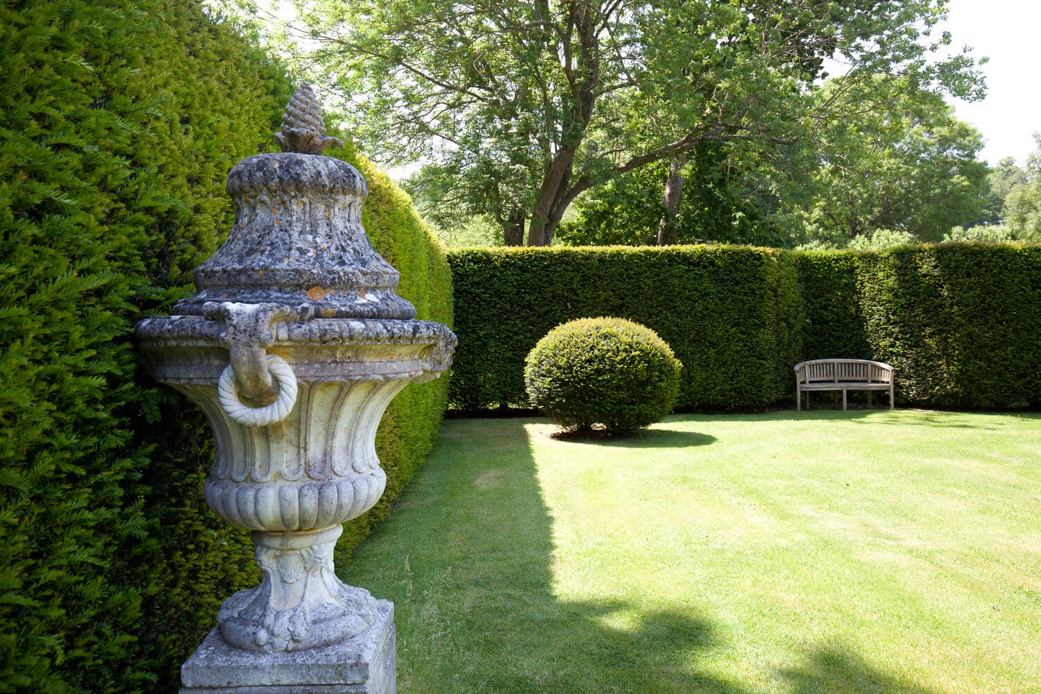 The main formal garden lying to the rear of the house is covered in an elegant white wisteria. A large stone terrace is flanked by rose bushes with plenty of outdoor dining terrace for summer entertaining. The whole garden has been thoughtfully laid out with ample lawns, smart clipped Ilex trees, and yew, beech and hornbeam hedges bringing symmetry and structure. An avenue of pleached lime trees draws the eye to the orchard beyond the formal garden created in a paddock previously used for grazing cattle.