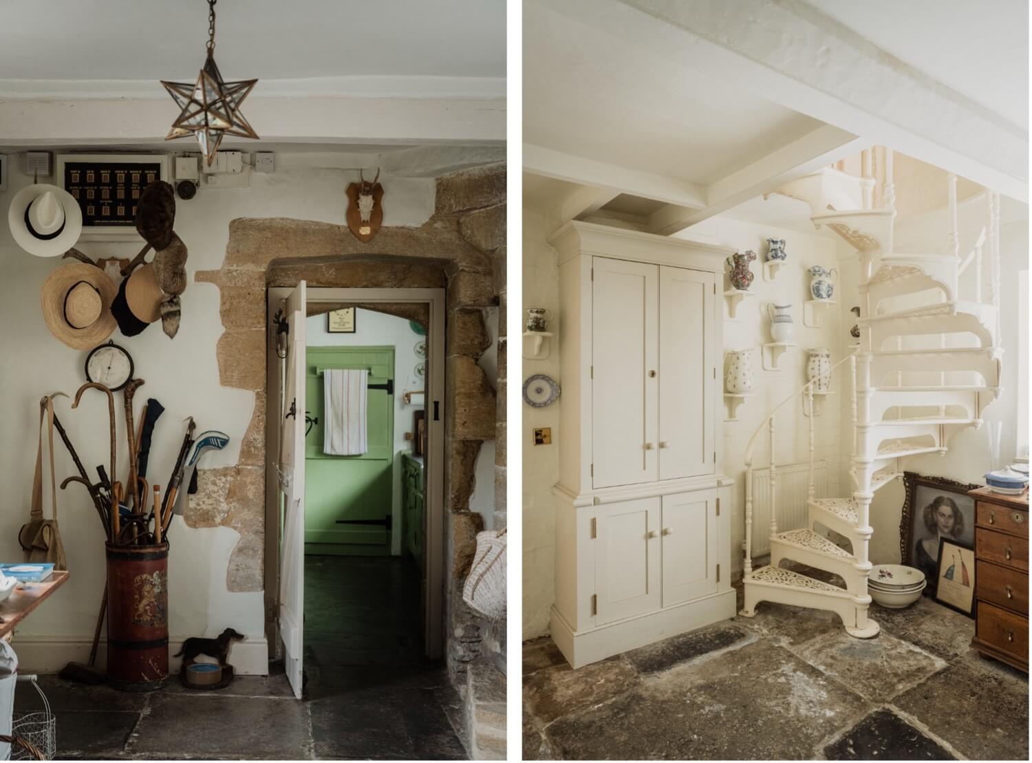The rear hall with medieval spiral stone staircase and doors onto the front courtyard and back garden is located next to the kitchen and provides hanging space for coats and boots and access to a separate utility/laundry room. A sitting room/nursery and a further sitting room with open fire are located down the hall.