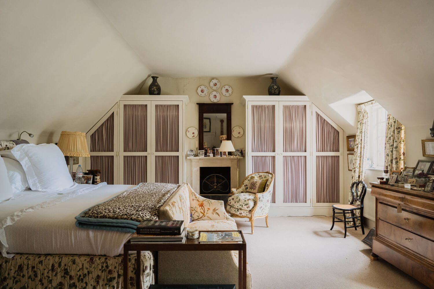 The main house has seven generously proportioned bedrooms, five bathrooms and a study. The large principal bedroom is located on the first floor of the main part of the house, with high sloping ceilings, inbuilt cupboards, a fireplace and a generous adjoining bathroom with double basins, bath, and inbuilt storage cupboard. Across the passage sits another large double bedroom with fireplace, charming 17th century panelling and an adjoining bathroom with bath and linen cupboard. Another double bedroom with pretty patterned wallpaper, a study, and a family bathroom are located along the corridor. To the southern end of the house there are two further double bedrooms and a bathroom with shower and their own spiral staircase. The second floor is made up of two double bedrooms, one with an adjoining bathroom with bath.