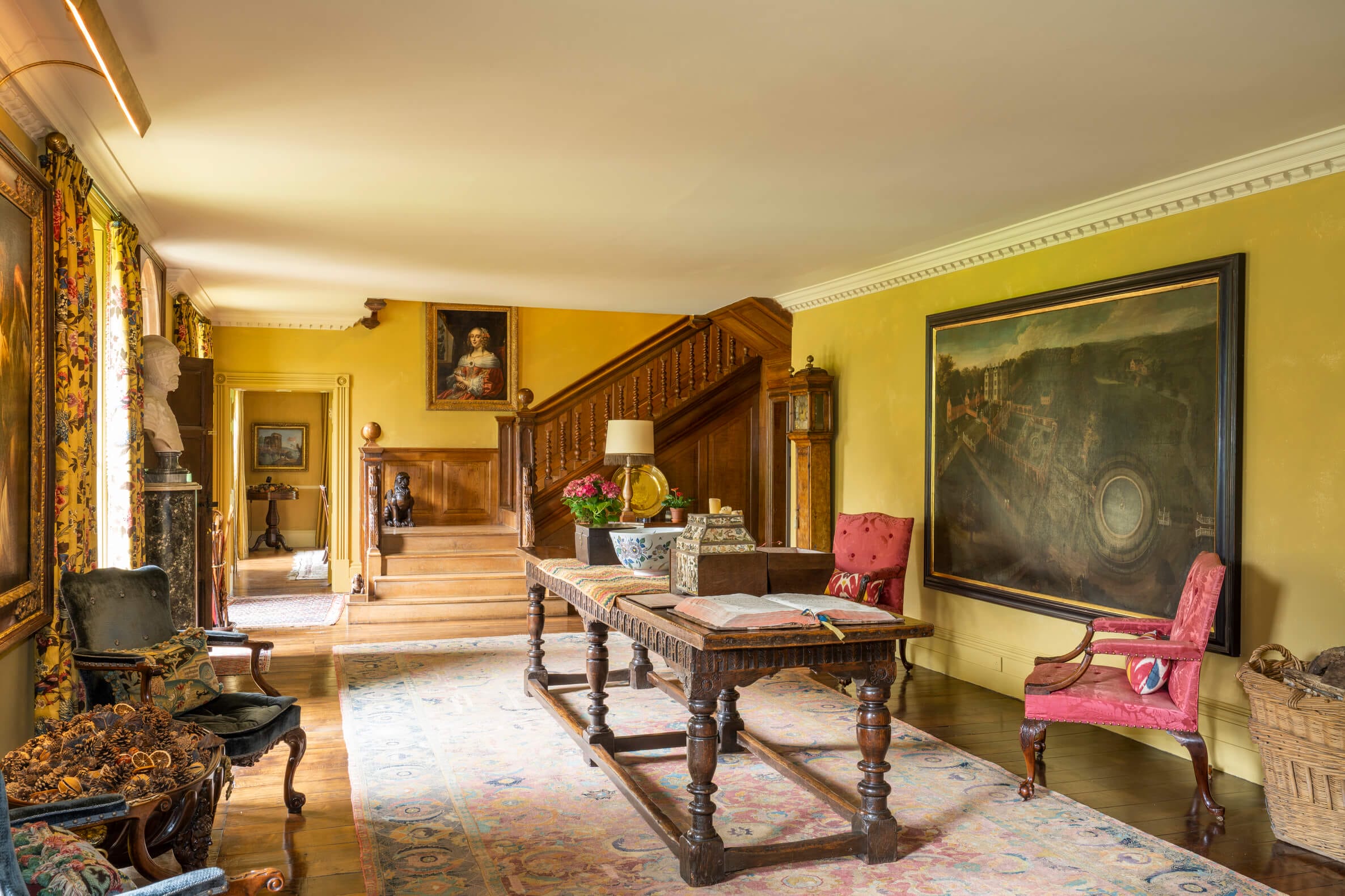 A new oak staircase was designed at the west end incorporating some old newel posts which had survived. The gardens have received wide acclaim in publications like ‘Great Gardens of Britain’ and have achieved an international reputation as a result of their beauty. They have been described as “a garden laid out like a Persian carpet”.