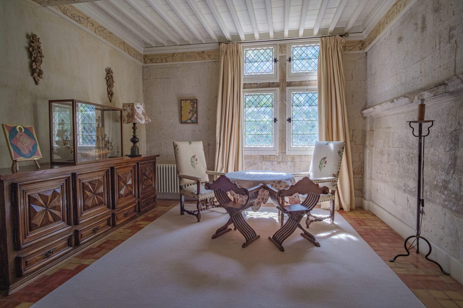 Now completely linked to the manor house via the garden level and the floors, to the point of forming a single building, this section was probably converted in the 18th century. Opening on to the south terrace via double, small-paned, French windows, it is said to have housed the small bedrooms used by the relatively few members of the manor’s domestic staff.