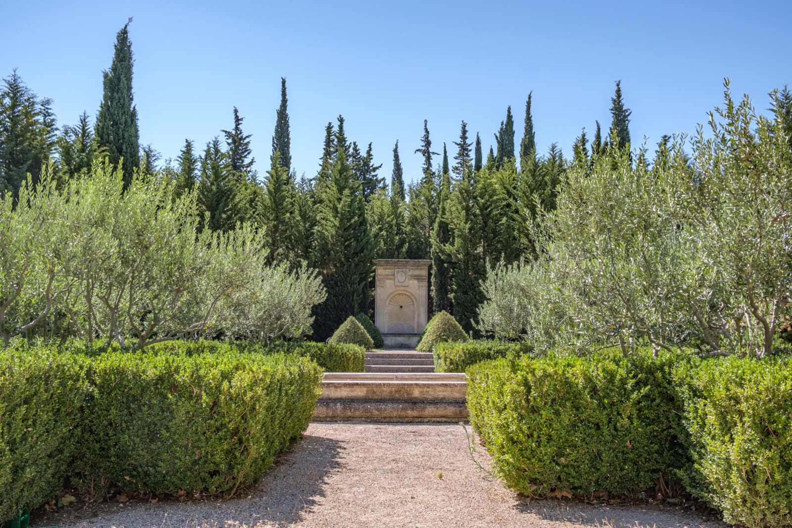 Directly adjoining the manor, a more recent construction dating from the 18th century stands in the shade of a three-hundred-year- old lime tree. This building once housed the staff accommodation. And lastly, on the east side, where a perimeter wall no doubt once existed, a rehabilitated farmhouse is separated from the manor by a row of cypress trees. Opening on to a vast courtyard that extends behind the French formal garden, it acts as a link with the rest of the parklands, where the permanent singing of the precious water, coming down from the Alpilles Mountains via the canal of the same name, can be heard.