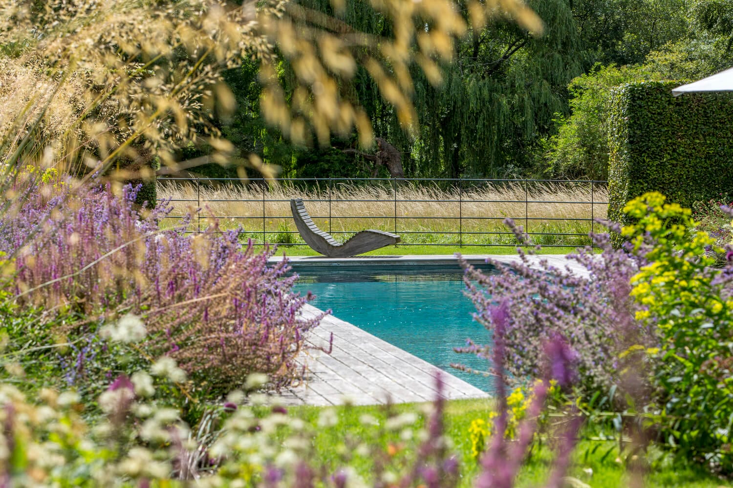 The main focus of the garden is undoubtedly the impressive two level walled garden, with sleek 21metre heated swimming pool set right in the middle with smart surrounding hardwood timber decking. The planting is cleverly set up to incorporate structure throughout the year, including in the depths of winter, when the garden takes on a particularly beautiful appearance in the frost. This part of the garden has a softer colour scheme in contrast to the courtyard garden which is planted with a more vibrant colour palette.