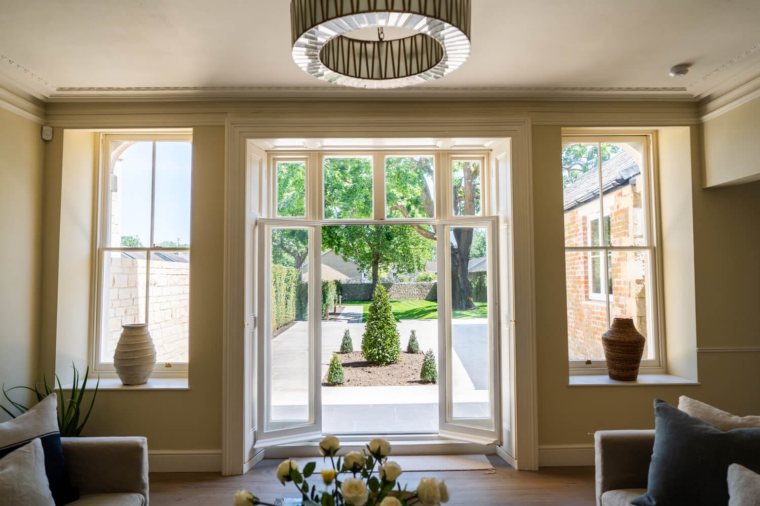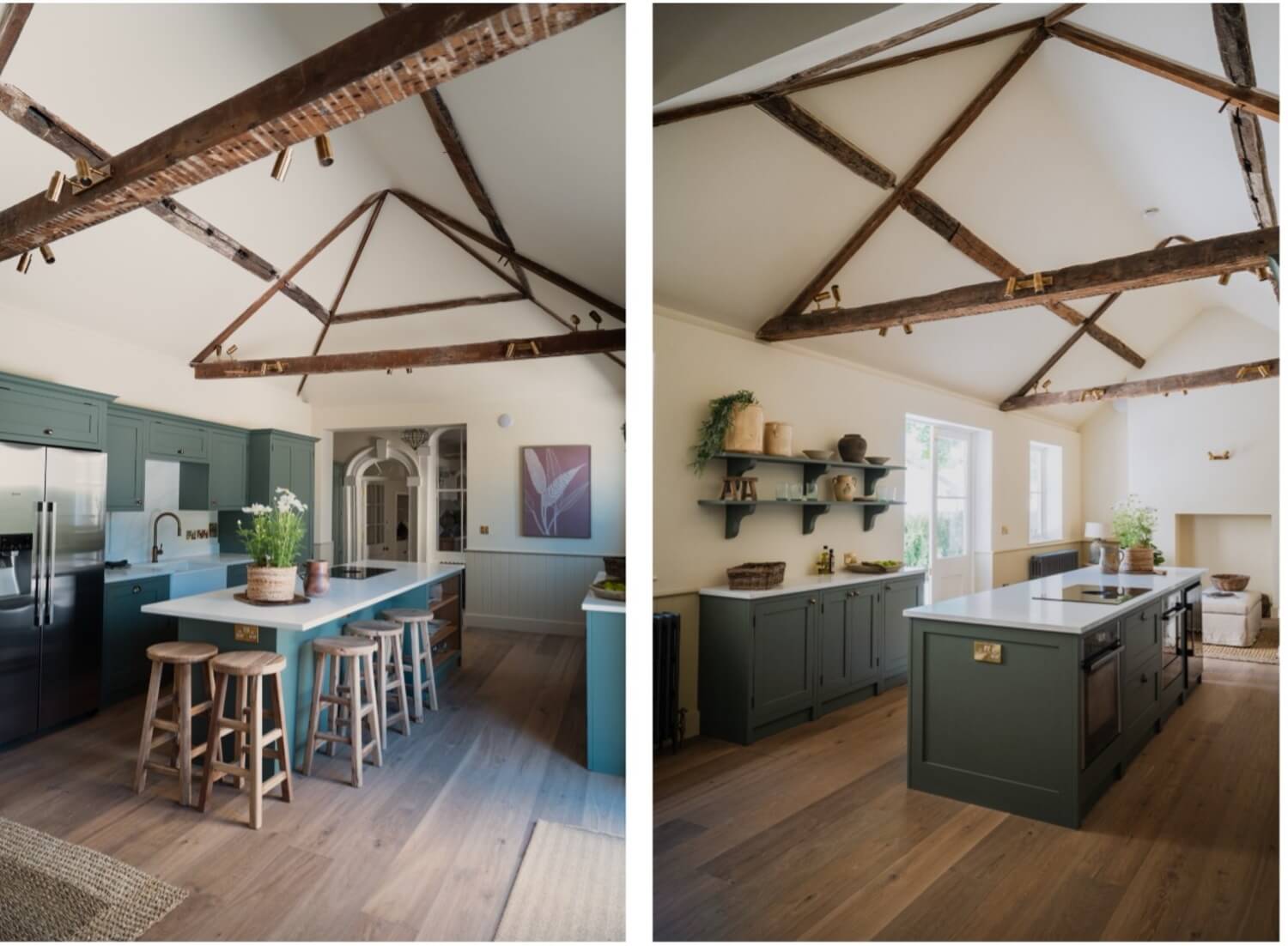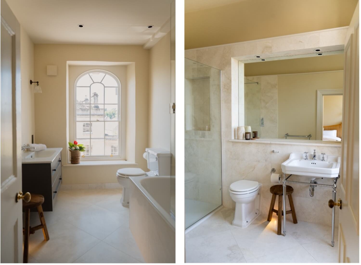 During the restoration, architectural discoveries have included original cornicing and ceiling roses that had been hidden under false ceilings; marble fireplaces that were boarded up; original oak timbers and beams; and a central oval roof lantern, in Pittville style. The renovation has brought 21st-century comforts without compromising character. The feeling throughout is one of light and space, with each house fitted with beautiful family kitchens and modern bathrooms with smart fixtures and fittings. Each house has also been rewired, replumbed, and fitted to enable full fibre internet (with a hardwired router on each floor).
