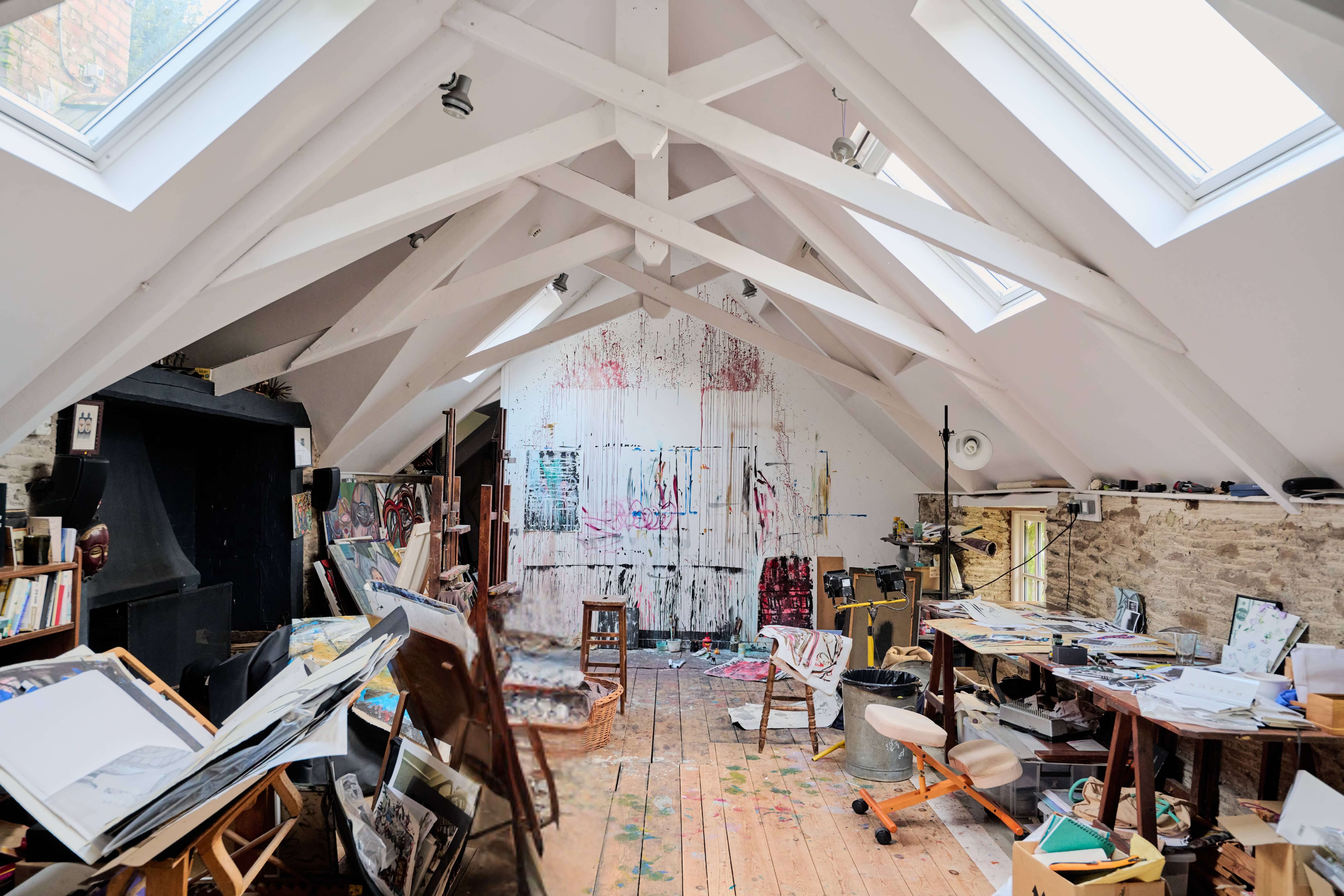 The 34-foot artist’s studio is a real triumph: vaulted ceilings, superb light, and a sense of space that seems to draw in the landscape itself — a mesmerising room for painting, writing, or any creative work.