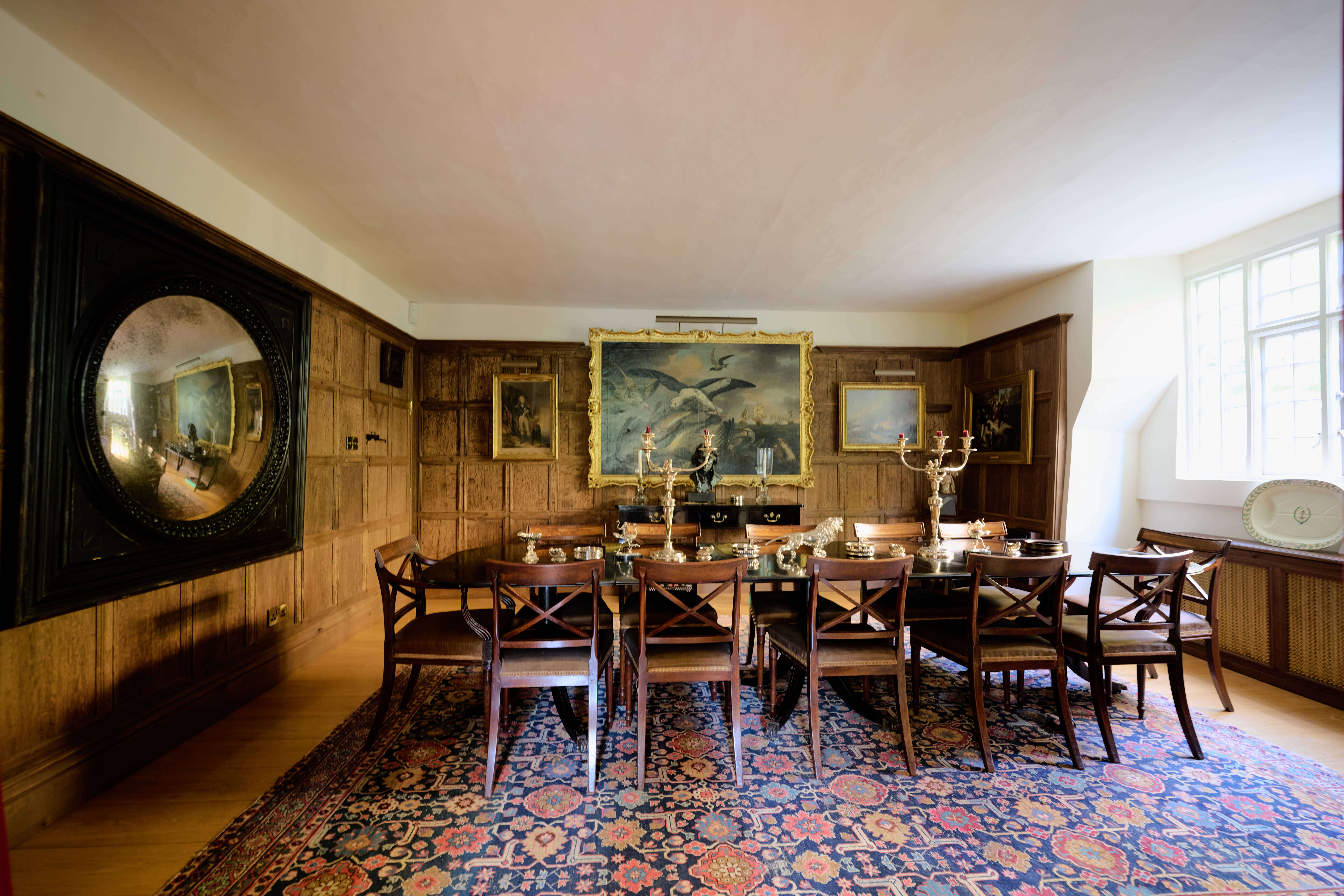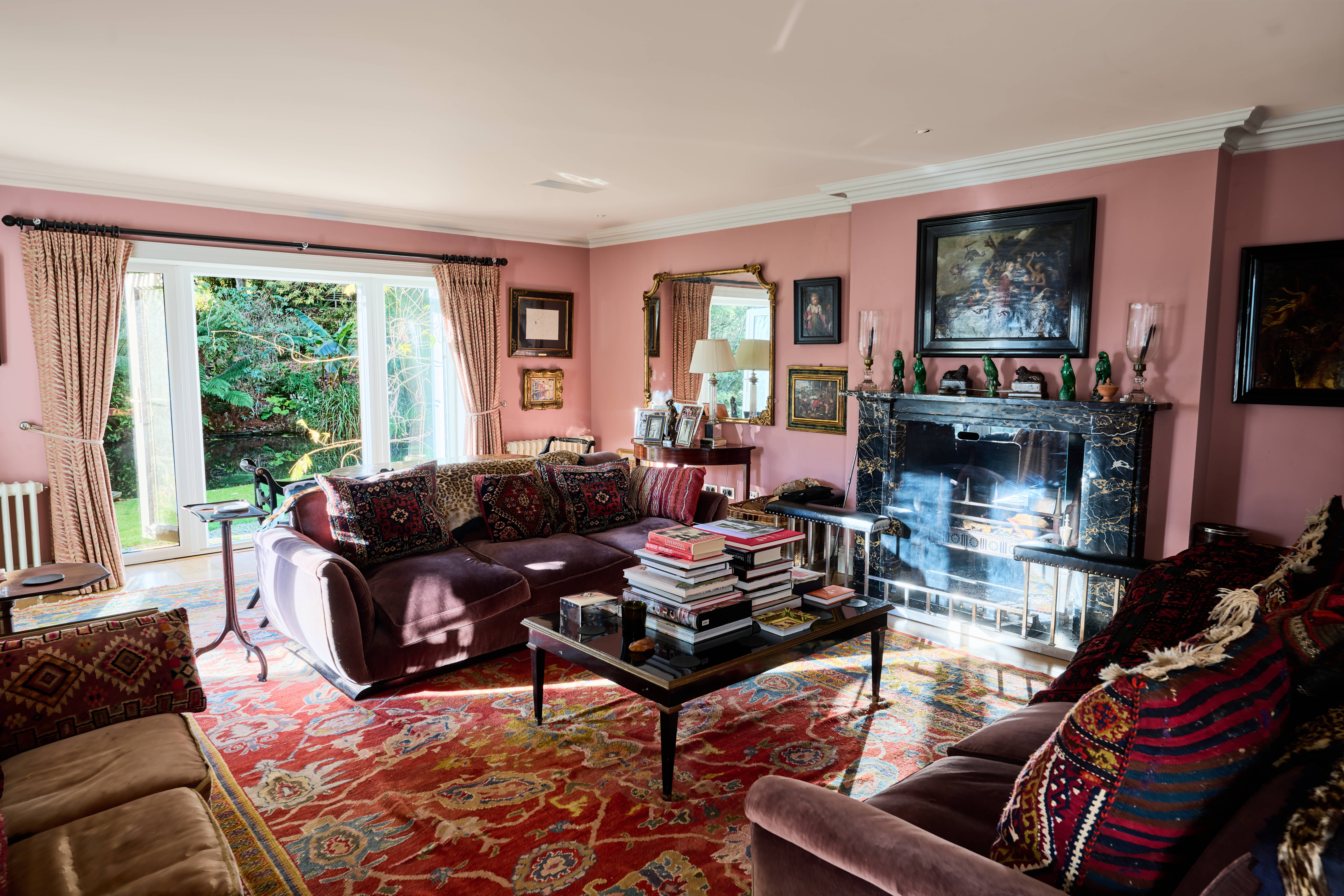 Inside, the proportions are generous and finely balanced. The reception hall leads to four elegant rooms, each with an open fireplace and a view onto either the gardens or the sea. The study, in particular, holds one of the house’s most mesmerising outlooks: the desk is set to gaze directly down the valley - across the ornate gardens - to the sea, and to the rolling South Hams hills rising on the far side of the bay. It is a captivating vantage point, and perhaps one of the most inspiring places to work or reflect.