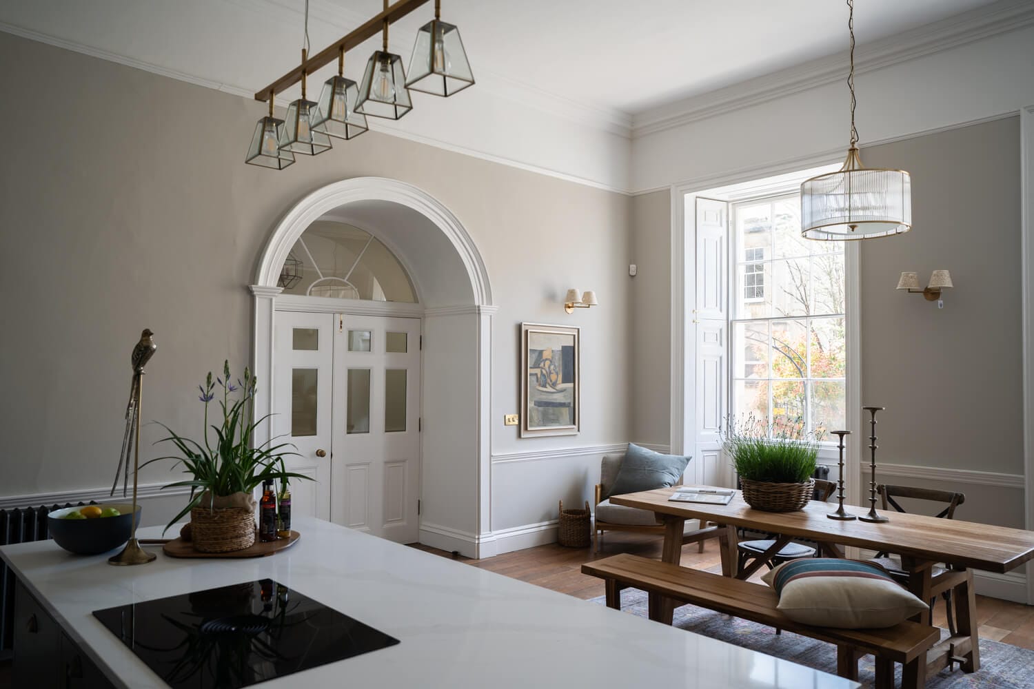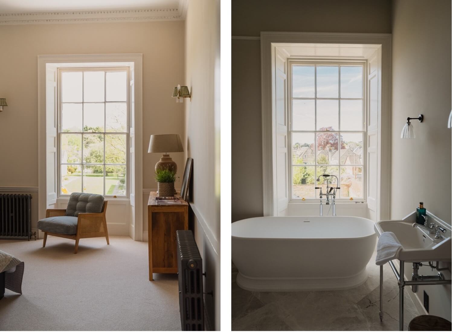 During the restoration, architectural discoveries have included original cornicing and ceiling roses that had been hidden under false ceilings; marble fireplaces that were boarded up; original oak timbers and beams; and a central oval roof lantern, in Pittville style. The renovation has brought 21st century comforts without compromising character. The feeling throughout is one of light and space, with each house fitted with beautiful family kitchens and modern bathrooms with smart fixtures and fittings. Each house has also been rewired, replumbed, and fitted to enable full fibre internet (with a hardwired router on each floor).