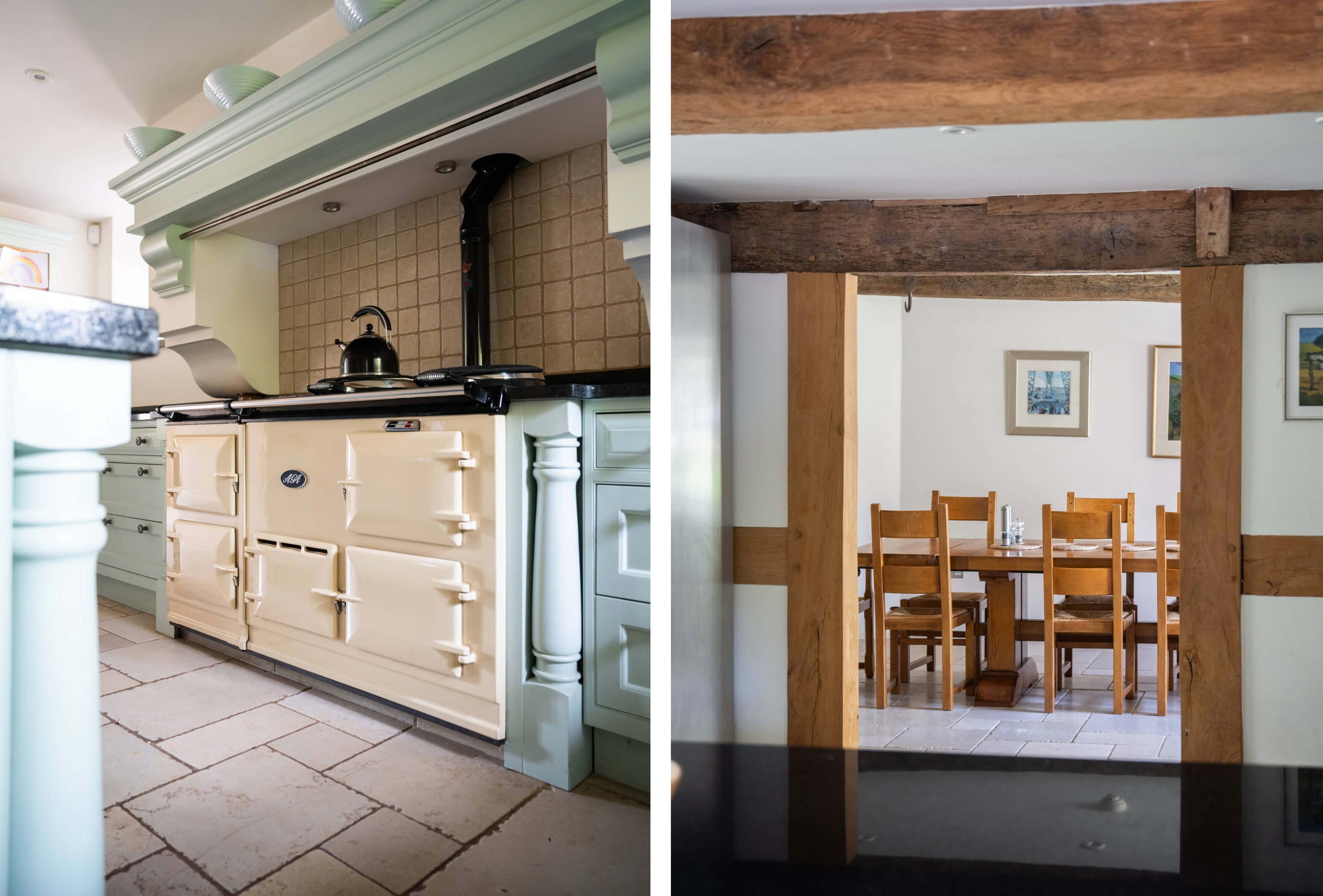Inevitably with a house of this nature, the kitchen remains the heart of the home. It is located in the former Tudor granary barn, which has been sympathetically converted to create the most wonderful open plan kitchen with bespoke handmade cabinetry, sociable island, AGA, a large adjoining informal dining area and a pantry. The kitchen also gives access to a well-placed back entrance hall/boot room which is perfect for coats and muddy paws. White goods and laundry are hidden away in a separate utility room with butler sink, painted panelling, storage cupboards, overhead laundry rack, and separate downstairs loo.