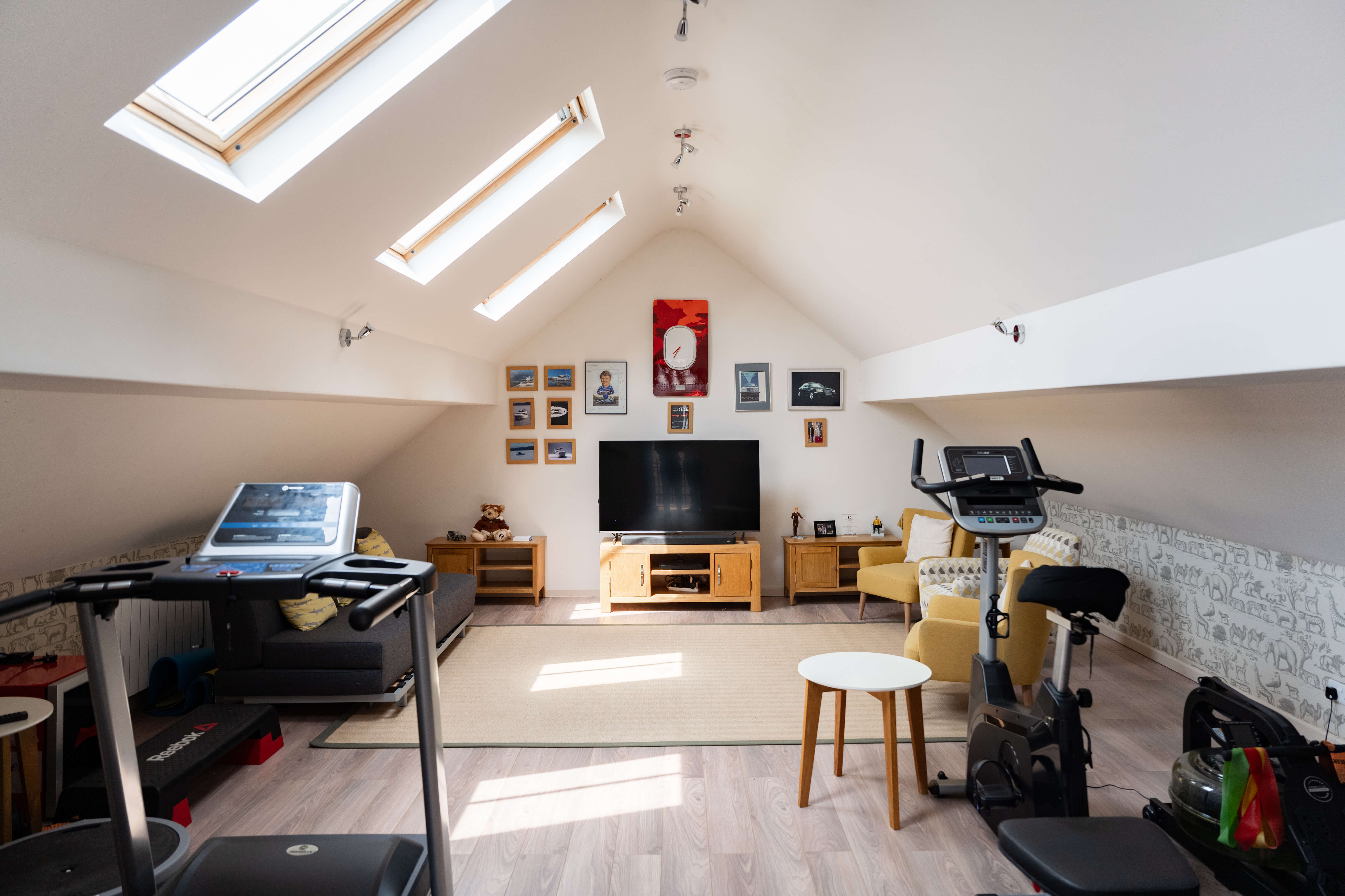 A generous gravelled parking area is complimented by a stone garage block for five cars, together with a log store, which is also enhanced by a very good annex above. This space currently serves as a gym, but it could be used as an additional bedroom/study overflow accommodation.